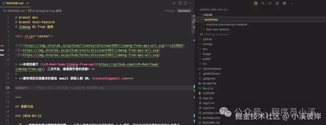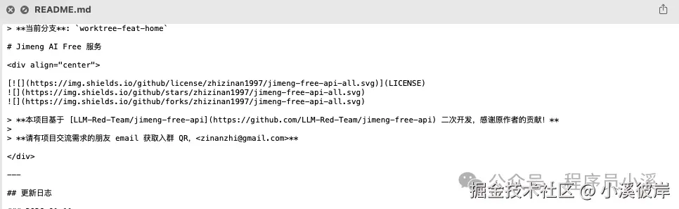打开Worktree工作区下的README文件可以看到均是未做过修改的,可以排除Worktree的代码是从本地本分支创建的