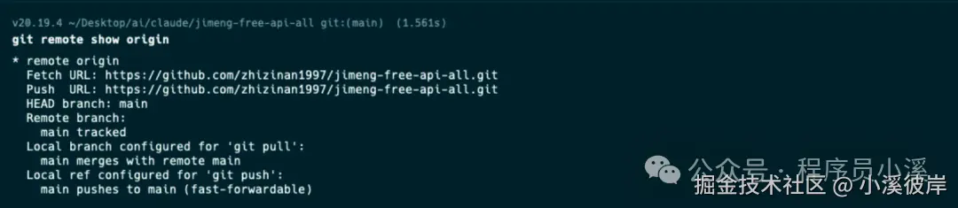 在命令行终端输入 git remote show origin 查看远程分支信息
