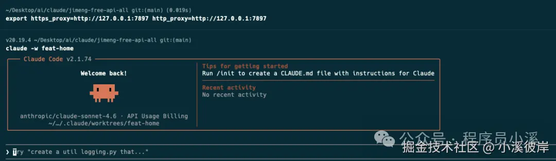 使用Git命令创建的Worktree,我们可以进入到Worktree工作目录启动Claude Code CLI