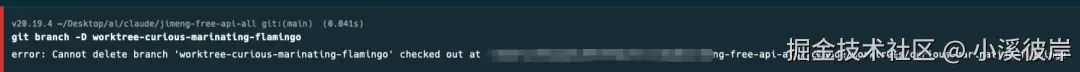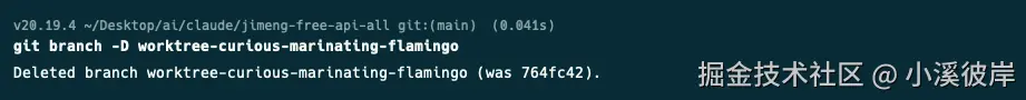 与通过AI合并方式不同的是,手动合并Claude Code CLI不会帮我们清理合并后的Worktree和分支,我们需要手动进行清理