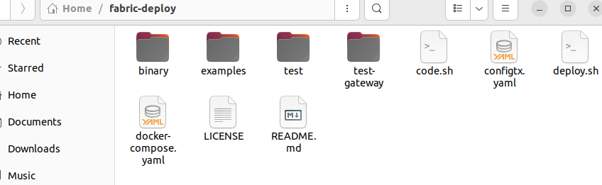 2.安装fabric的生产网络。由于目前docker已经无法拉取fabric的镜像,所以可以使用我上传在github的fabric-deploy,直接使用git克隆。得到如图文件夹。