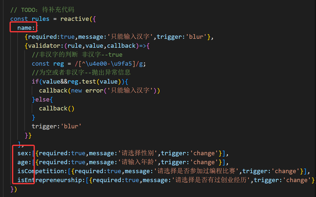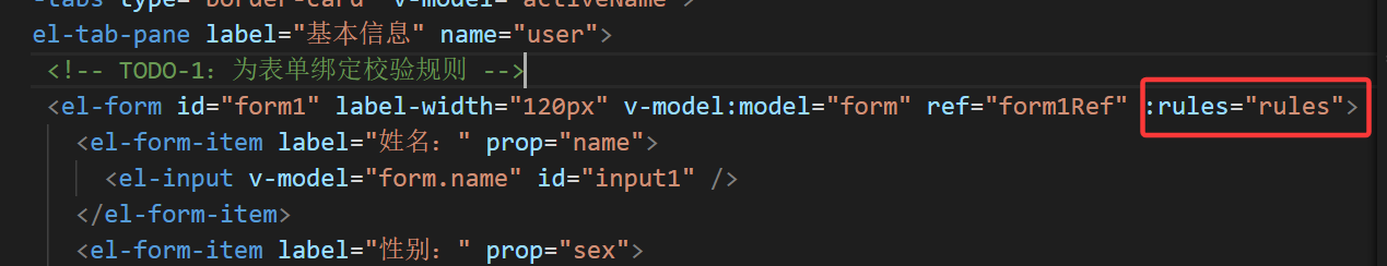 绑定规则--: :rules:"响应式变量名"--变量名取决于你const的名称