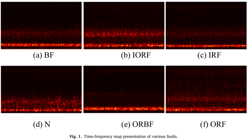 不同故障类型在时频图上呈现出明显不同的纹理特征------球故障(BF)、内圈故障(IRF)、外圈故障(ORF)、复合故障(IORF、ORBF)等均有其独特的时频"指纹",这正是时频图能够作为独立模态参与融合的底层原因。