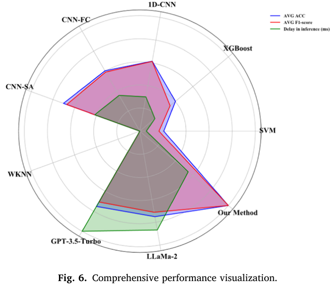 - 相较最强基线 LLaMa-2(平均 ACC 91.6%),提升 4.2% ;F1-score 提升范围为 5.3%~18.1%。