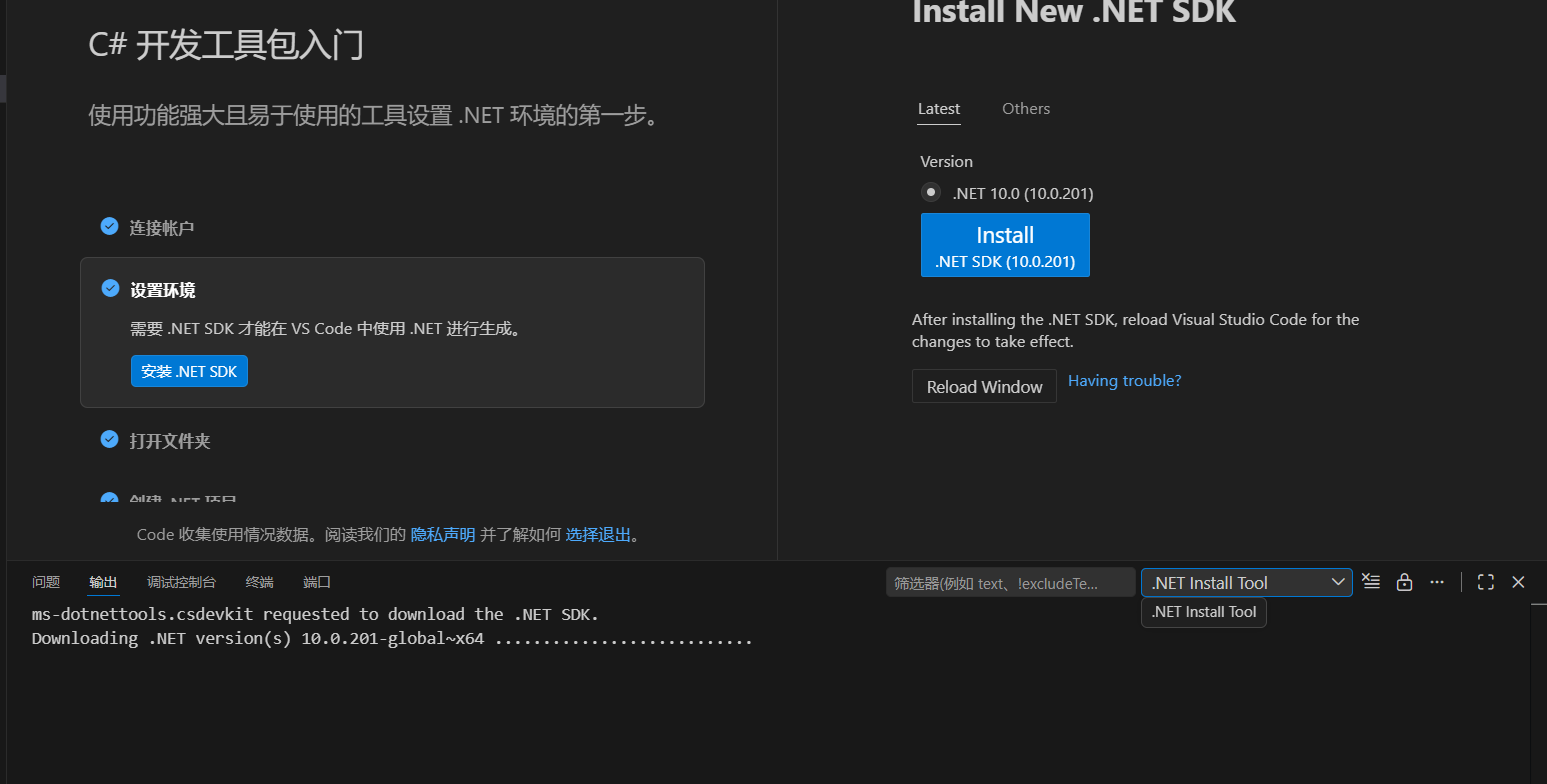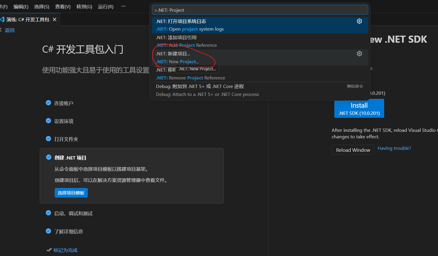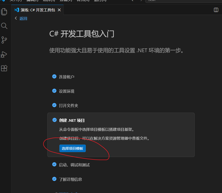 开始界面,点击更多,然后选择C#开发工具包入门,再点击.NET SDK