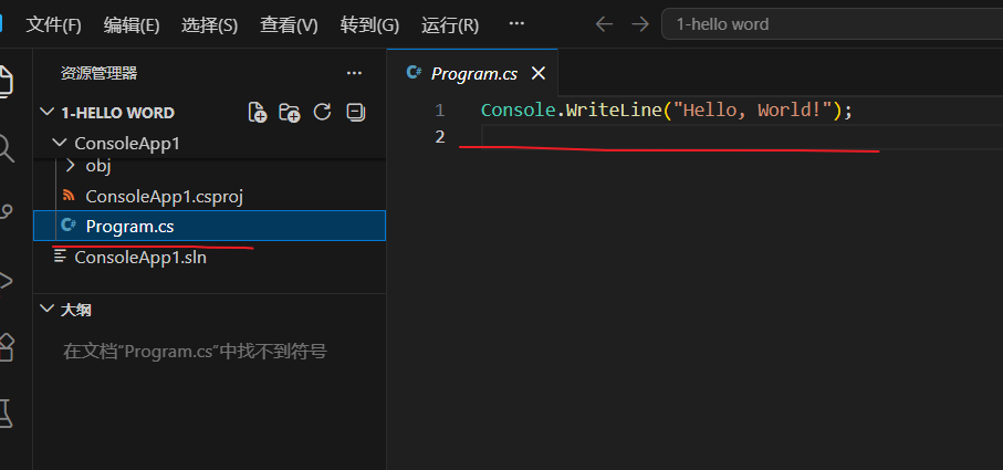 代码在这里面写入,也就是.cs文件。刚创建的文件会默认写好打印hello world的代码