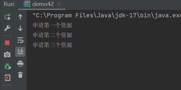 System.out.println("申请第三个资源");
