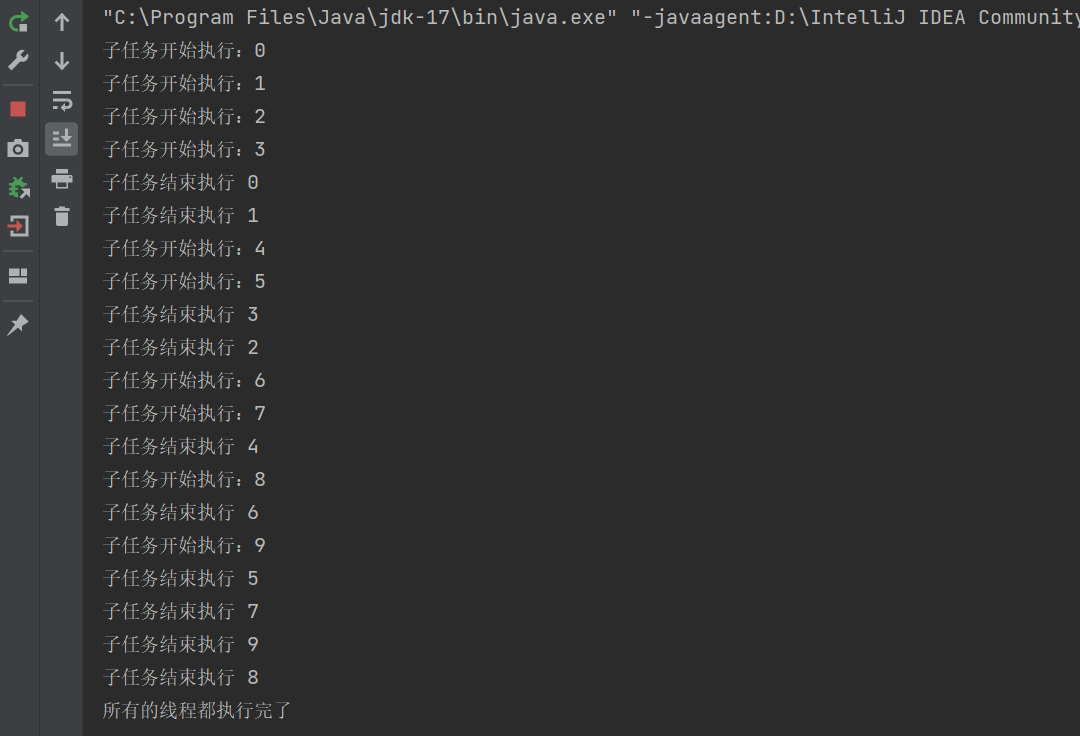 System.out.println("子任务开始执行:"+id);