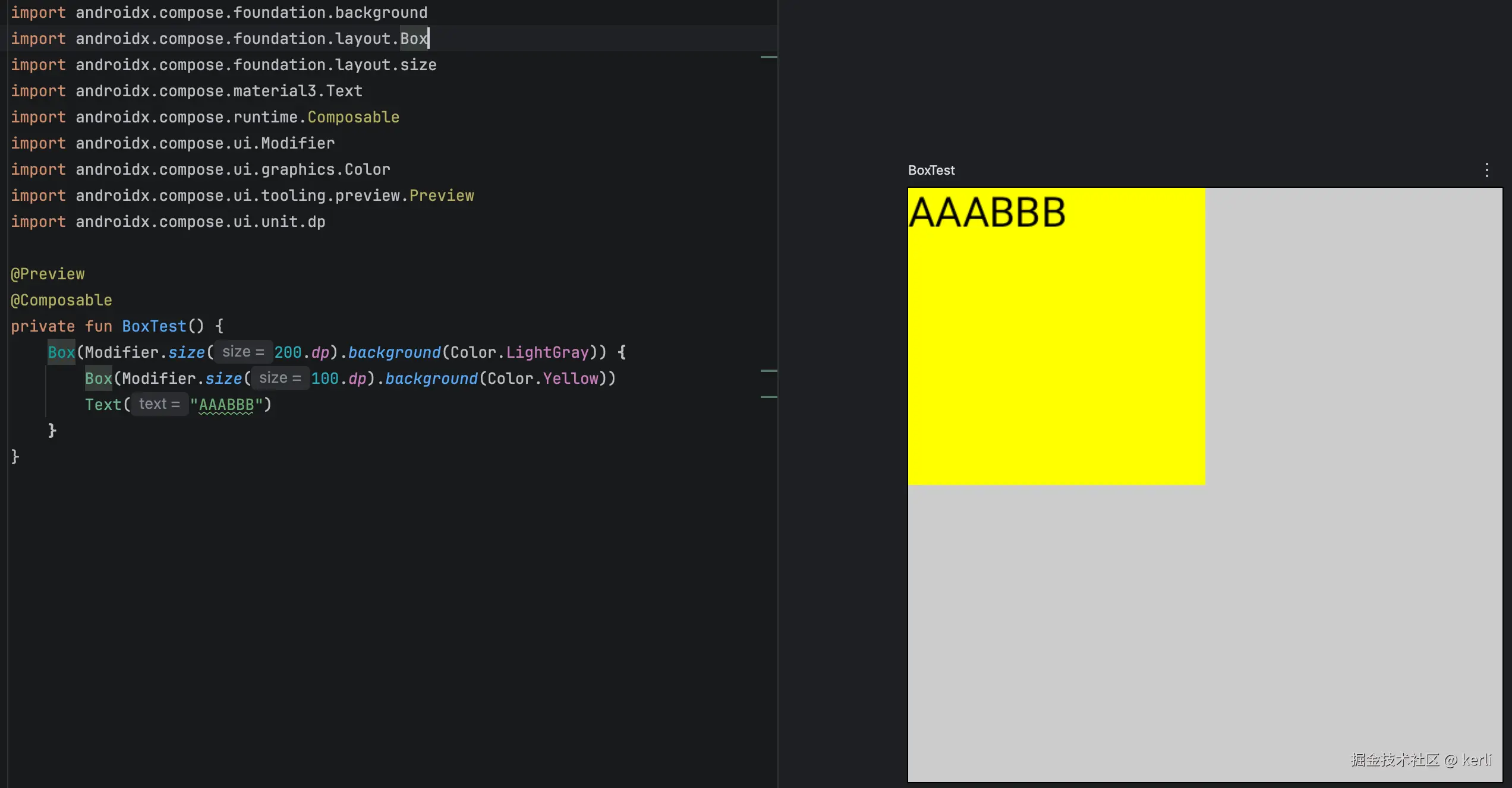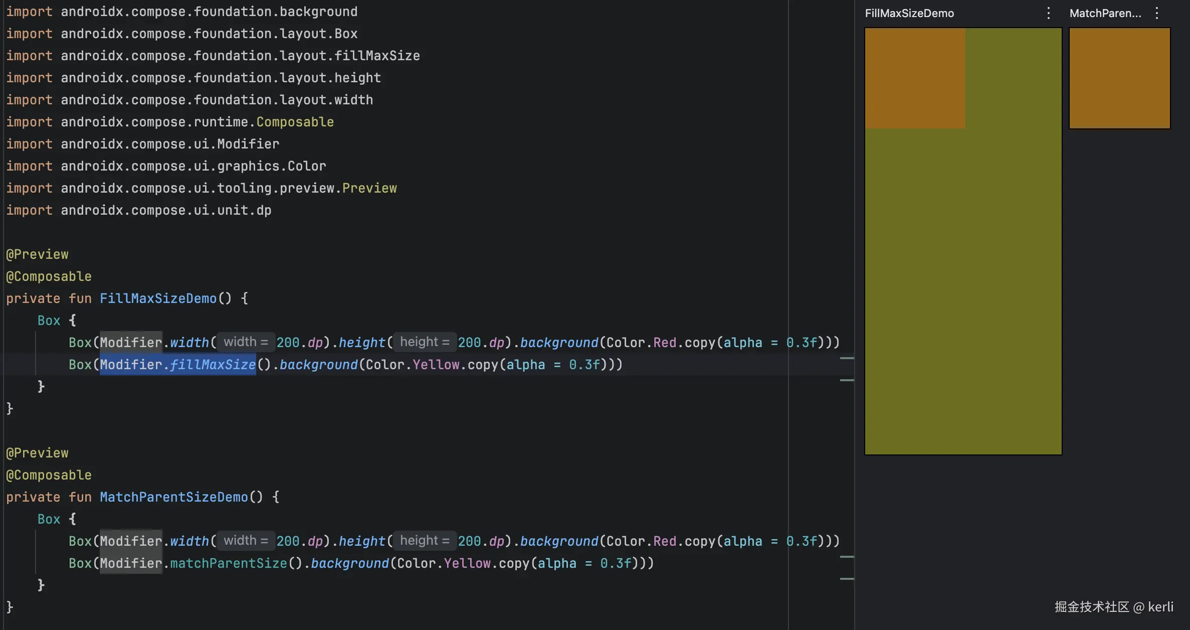 而 Modifier.fillMaxSize 会盛满 Box 的最大宽高。