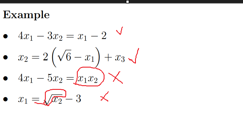 a1x1+a2x2+....+anxn=b x必须是一次幂 b=0 那么线性方程是均匀的 否则是不均匀的