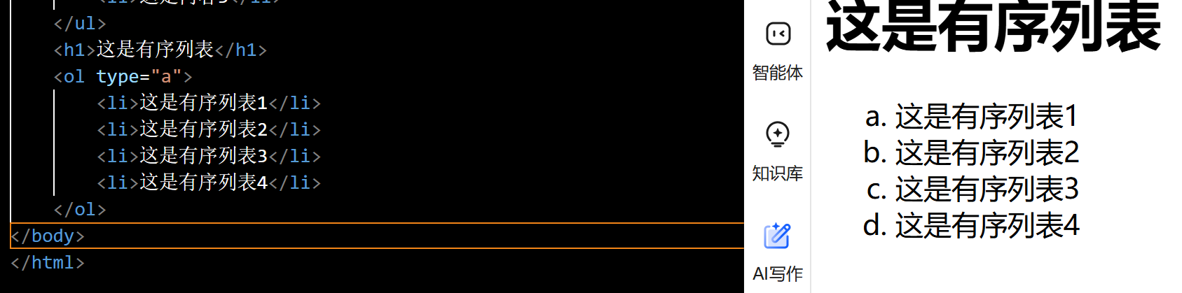 <h1>这是有序列表</h1>