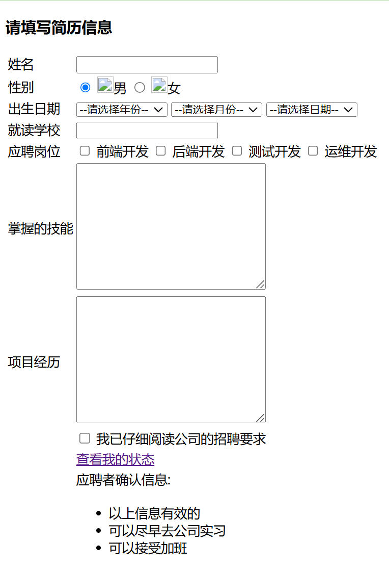 <label for="read">我已仔细阅读公司的招聘要求</label>