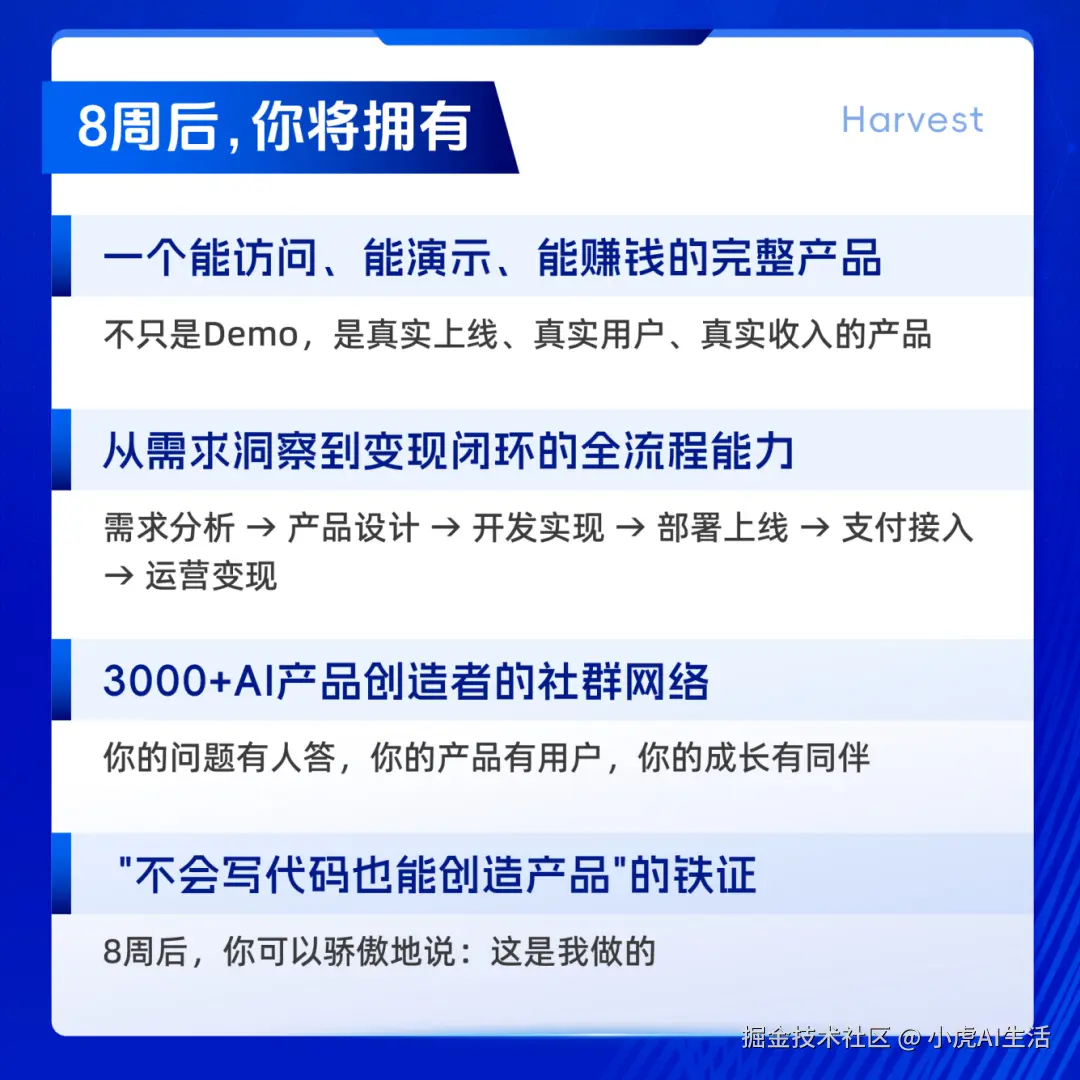 P.S. AI 编程进阶营第一期招募中,8 周课程、7 个大案例、6 位教练、20 节直播课。后台回复「进阶营」了解详情。