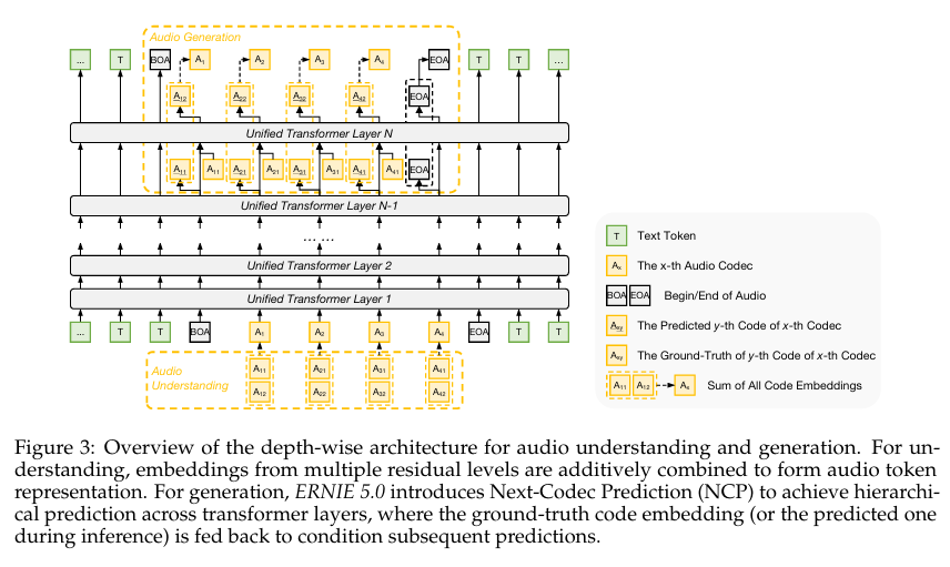 - 核心:共享统一Transformer主干 + 专用视觉/音频Tokenizer