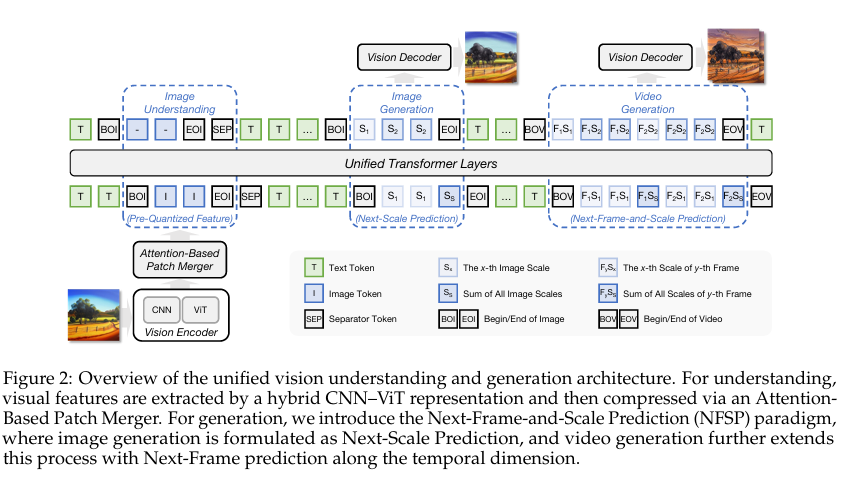 - 范式:下一帧与尺度预测(NFSP),图像按尺度生成、视频按帧+尺度生成