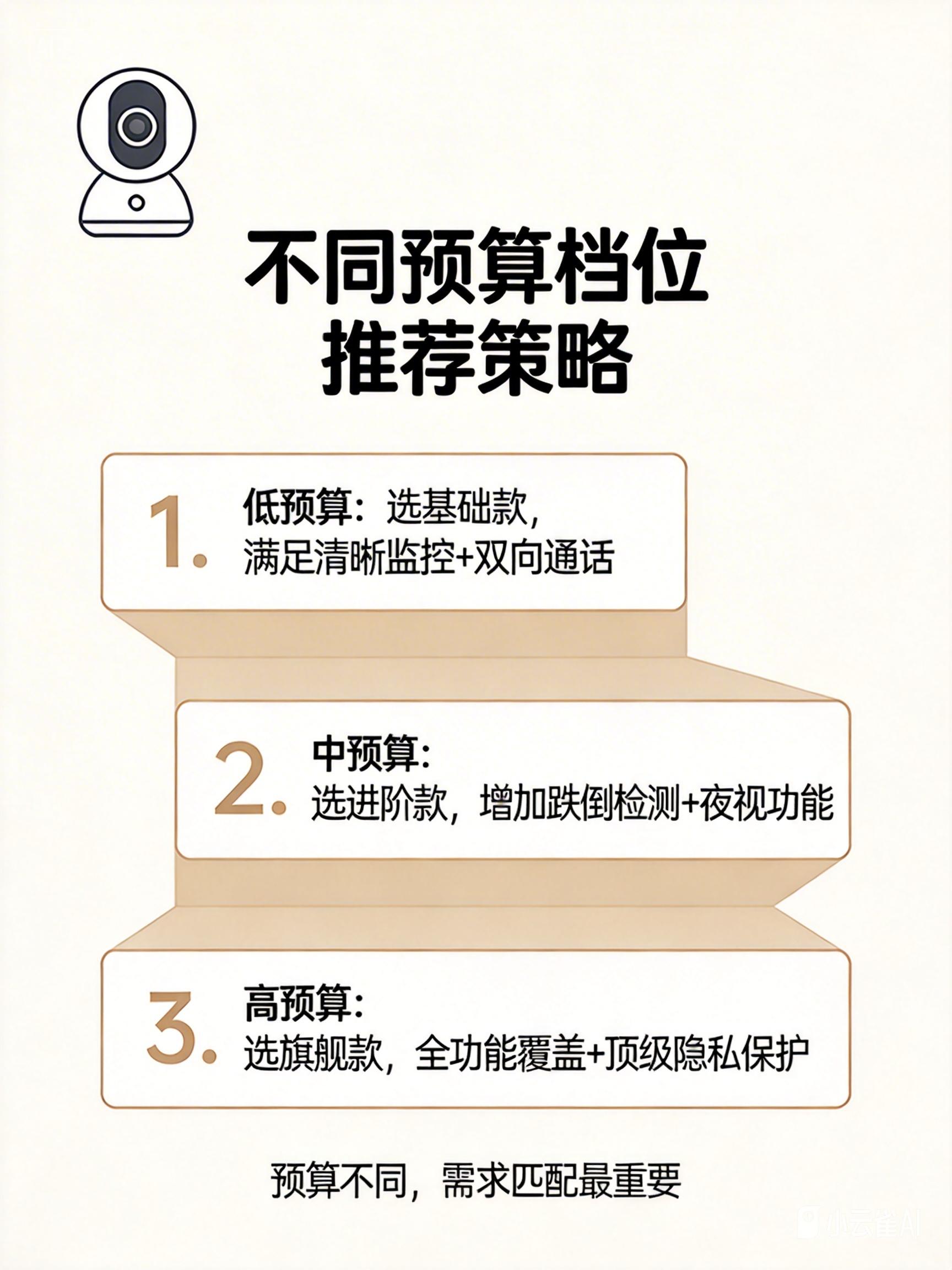 - 本地存储: 优先支持MicroSD卡存储,重要录像不经过云端。若用云存储,选国内大厂服务并关闭非必要上传。