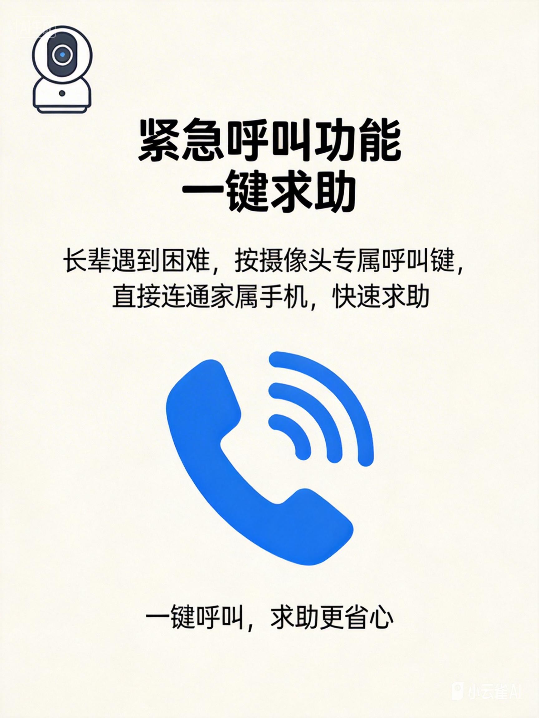 - 必备设计: 摄像头应带实体按键(老人摔倒可能无法找手机),一键触发闪光+高分贝警报,同时推送通知到5位紧急联系人。