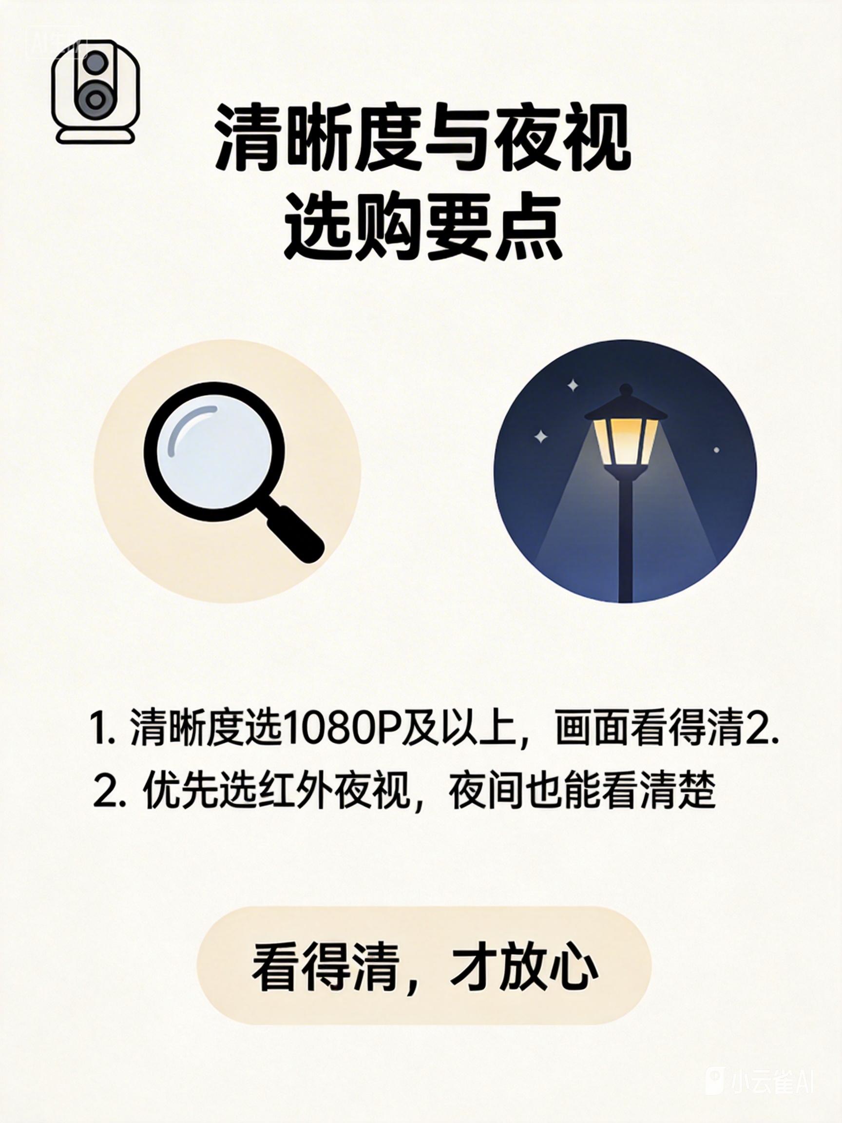 - 避坑: 低于1080P的型号夜间效果通常较差。