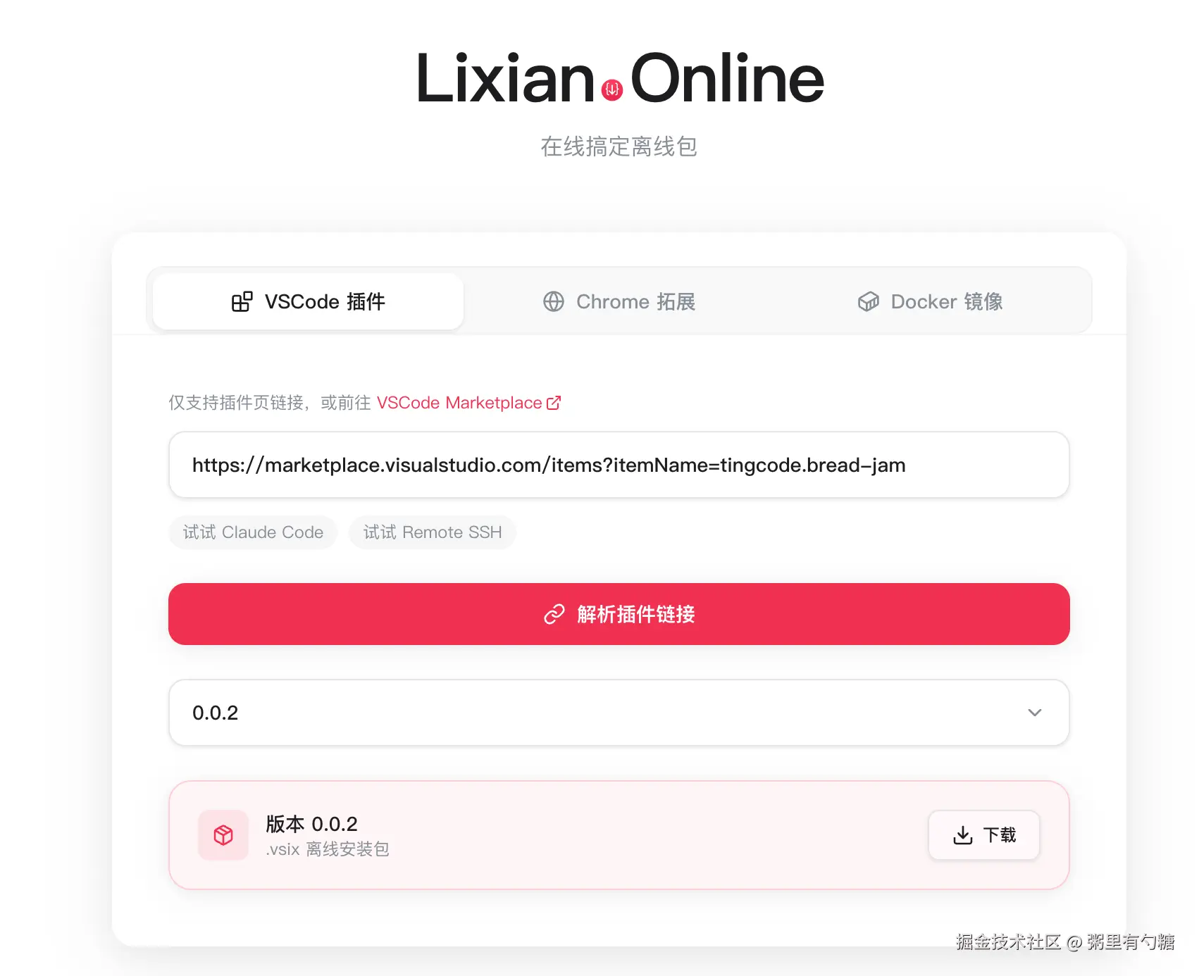 当然还支持 Chrome 扩展和 Docker 镜像的离线安装包的获取