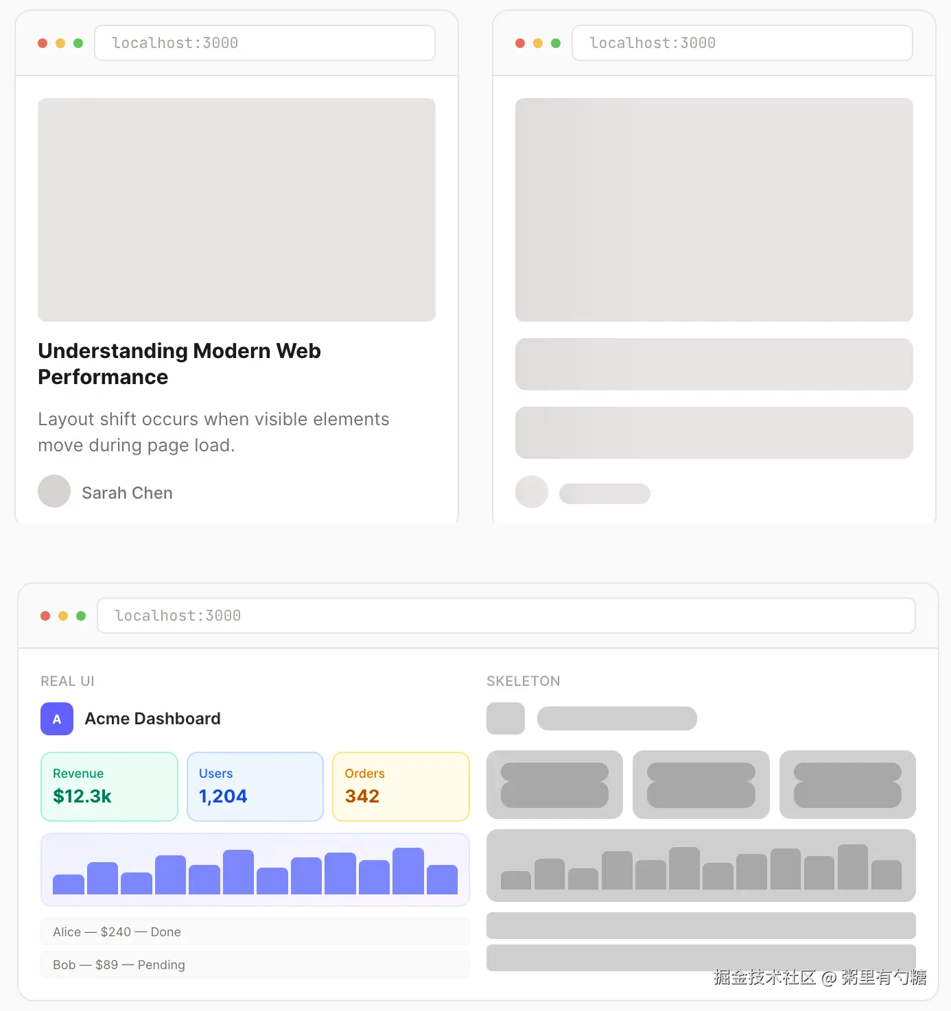 自动生成骨架屏,使用简单,支持多种类型框架。