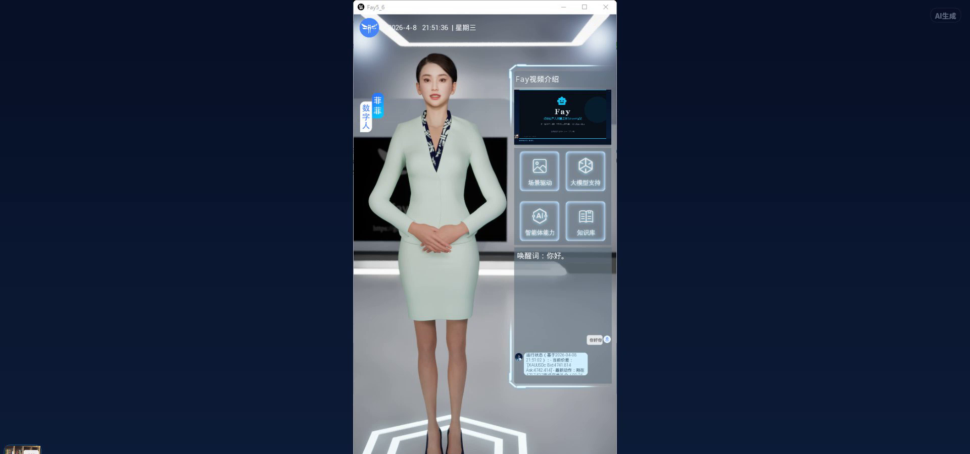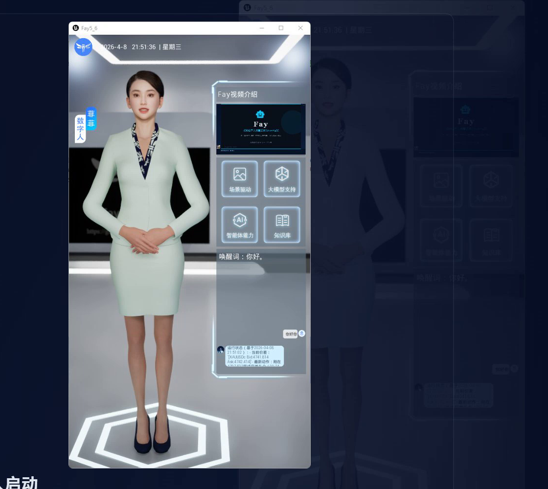 # 数字人启动后会自动连接到本地运行中的 Fay 服务