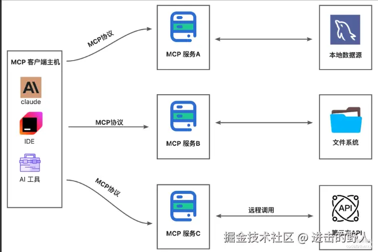 关键优势: 客户端和服务端完全解耦,任何语言开发的客户端都可以调用MCP服务。