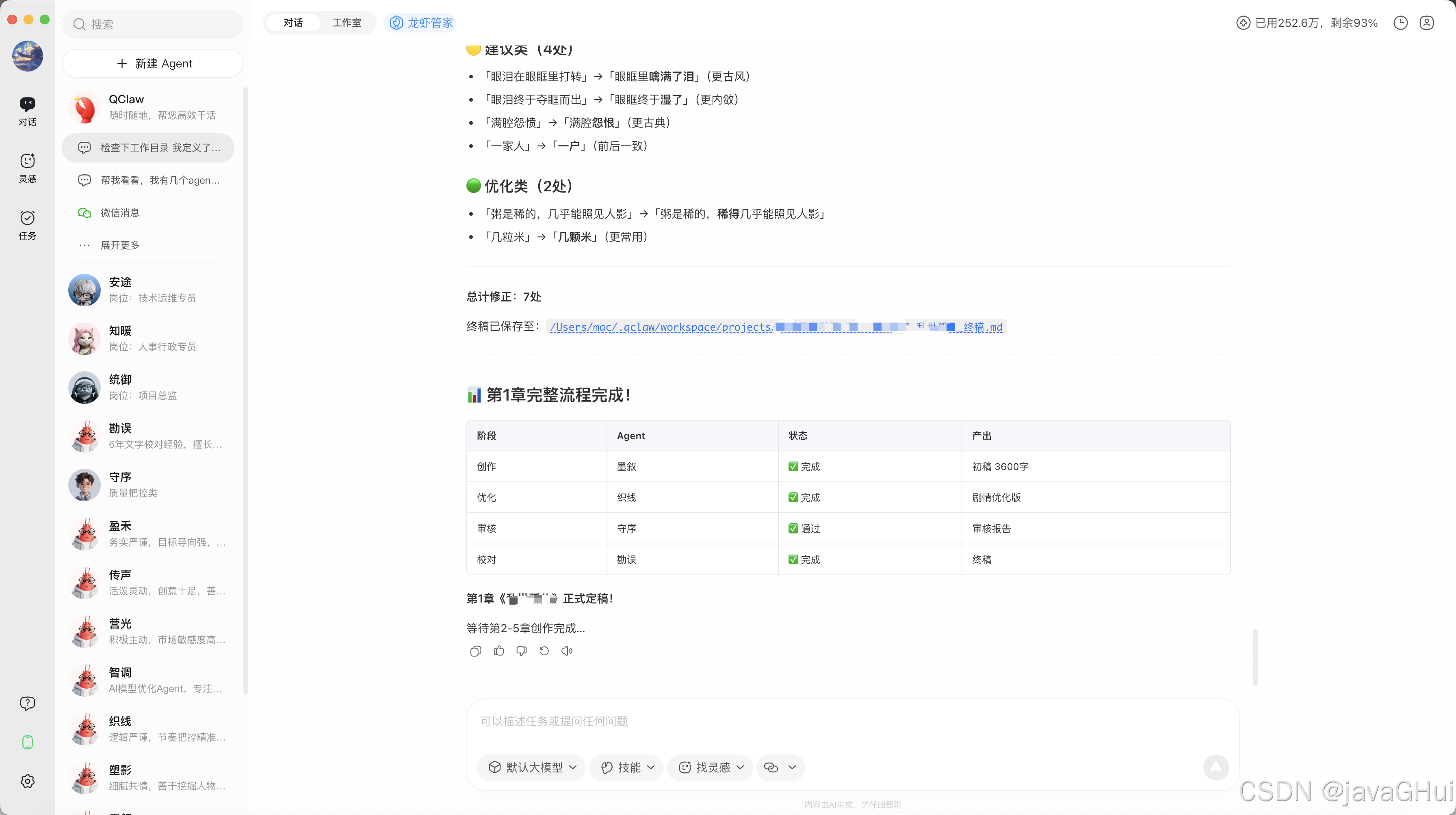 这里测试用他写小说,创建了一个小说公司,创建了13个Agent、
