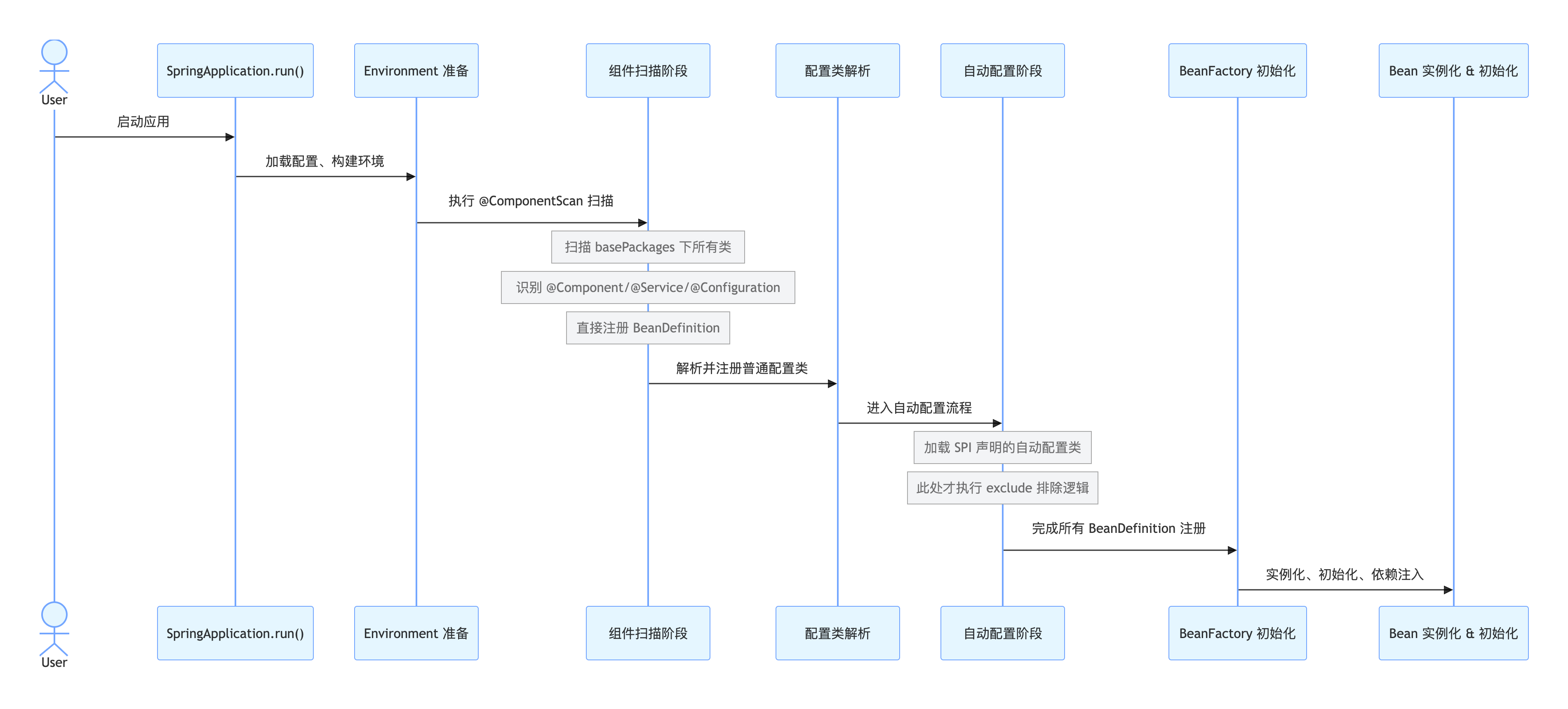 - 理解 "组件扫描" 与 "自动配置" 两条加载链路,是解决 Spring Boot 配置冲突、Bean 重复加载、排除失效类问题的核心。