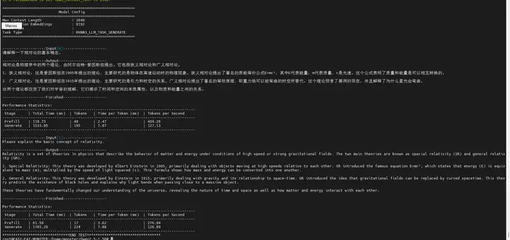 能力验证:此测试将启动一个交互式会话,开发者可以直接输入文本,模型将基于RK1820的算力进行生成式回复,直观验证了在边缘端部署并运行十亿参数级大模型的可行性。