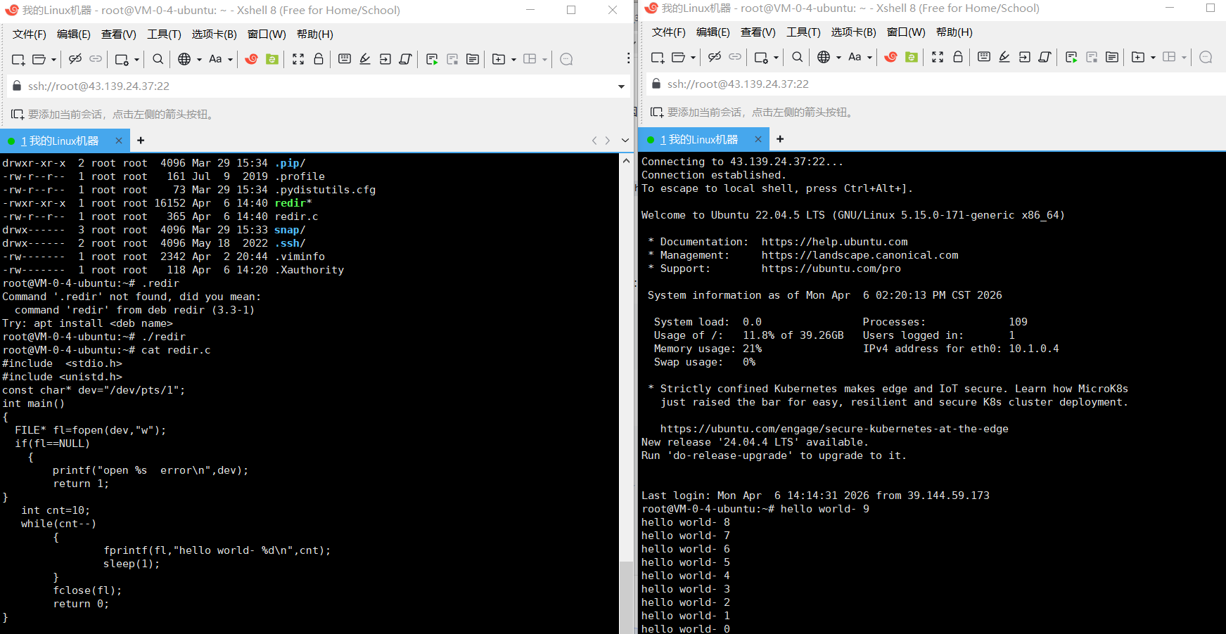 echo 'hello' >> test.txt 追加重定向