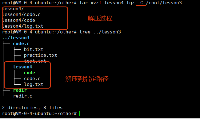 tar xzf lesson4.tgz -C /root/other