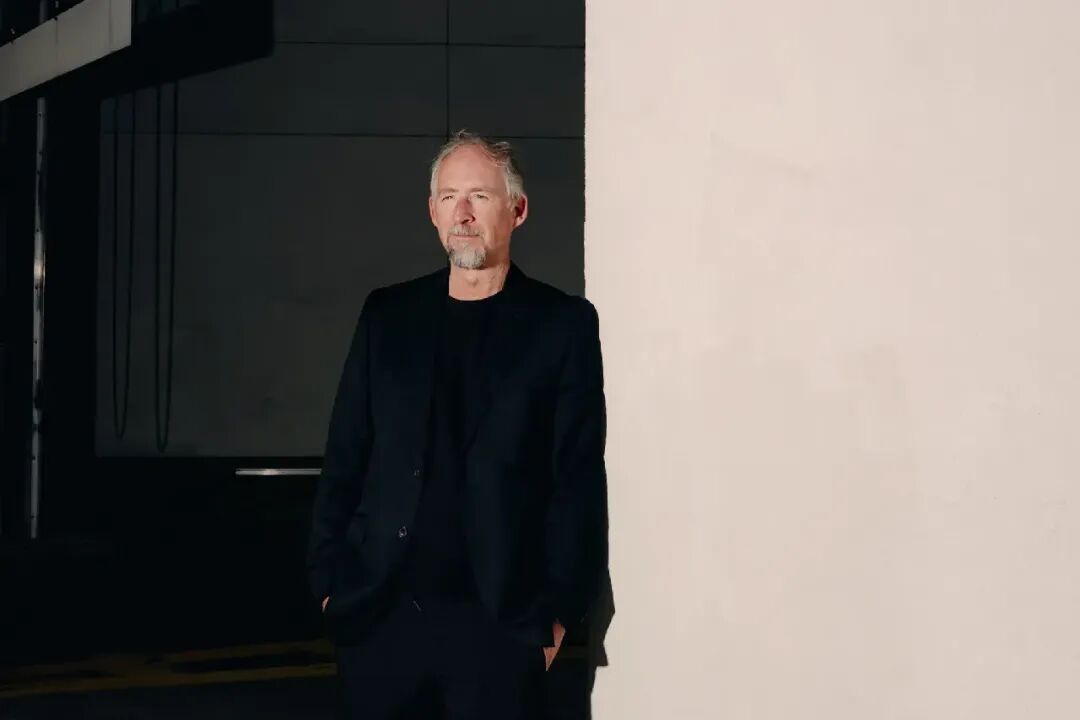 亚当·贝克, 身穿黑色西装和衬衫, 站在黑白相间的背景前. 贝克先生开办了一家新的比特币金库公司. 图片来源:阿米尔·汉贾为纽约时报拍摄