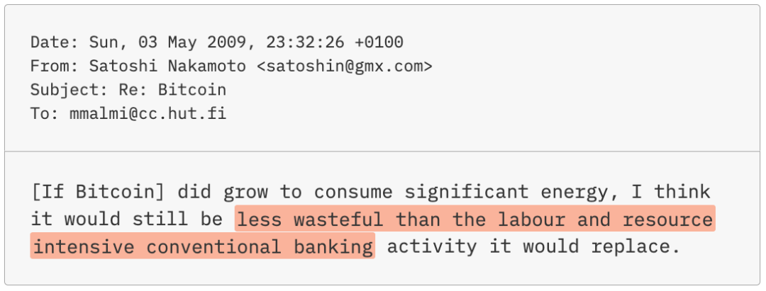 中本聪还认为, 比特币可能会导致垃圾邮件的全面减少. 在发布白皮书几天后, 他提出自己的创造可能会给黑客控制的用来淹没电子邮件收件箱的僵尸电脑大军一个新目标: "转而生成比特币".