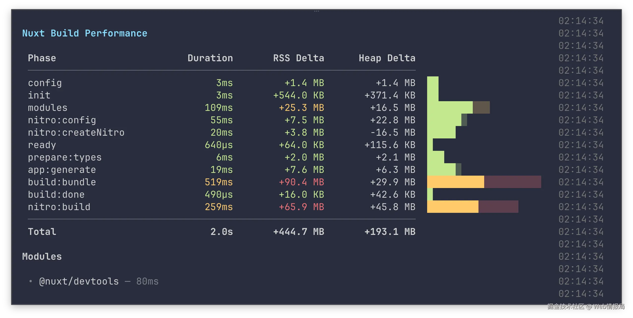 import保护,现在会显示建议和完整的追踪信息 - 构建性能分析报告,显示构建阶段或打包插件的持续时间等数据,轻松诊断性能瓶颈