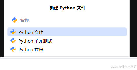 - 内容:空白的代码文件,你可以在里面写类、函数、逻辑,或者直接写脚本。