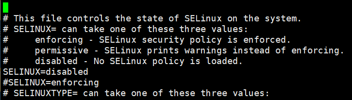 vi /etc/selinux/config