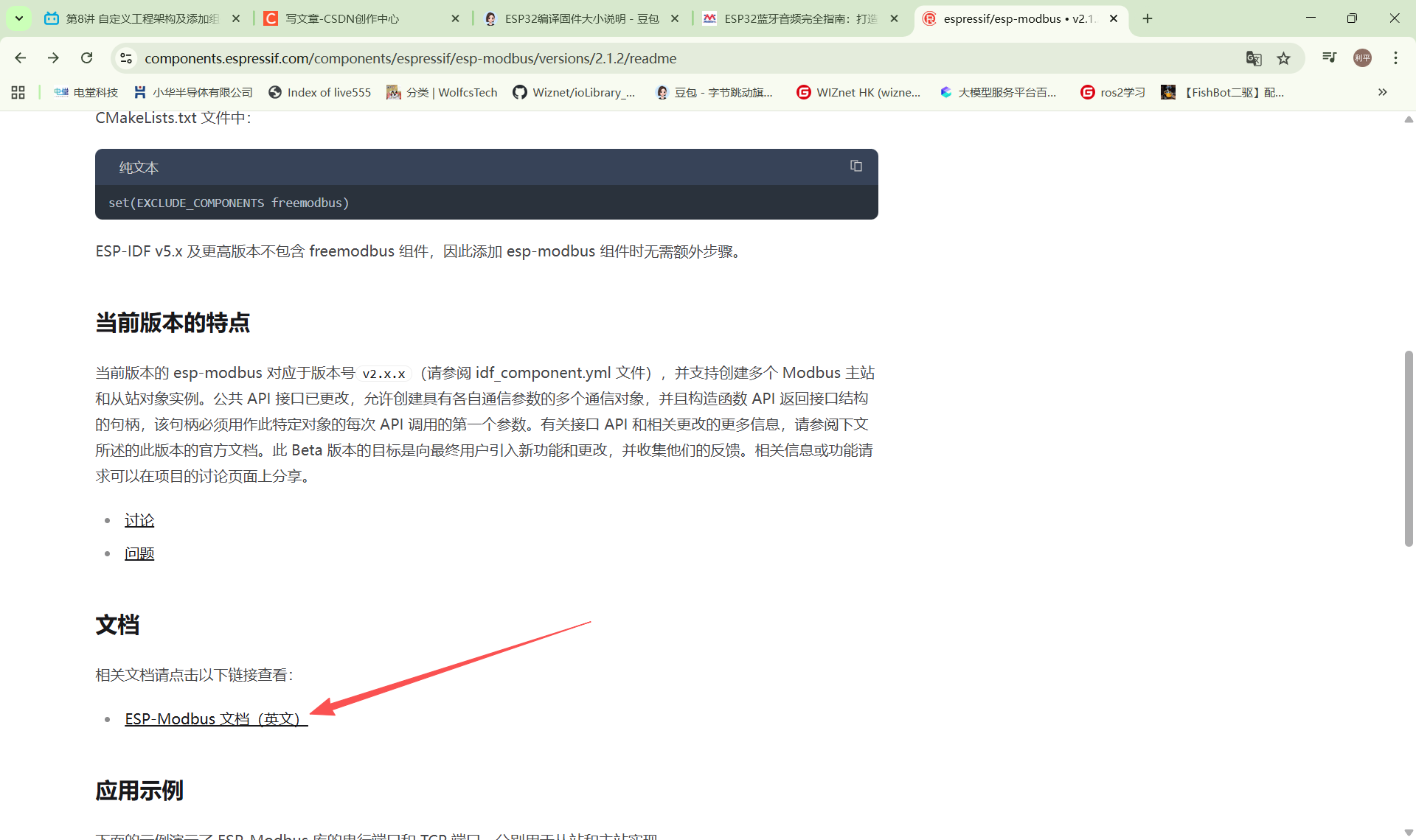 https://components.espressif.com/ ESP32的官方组件地址在这里,可以打开进去浏览,一般组件页面里面都有该组件的使用说明,但是是英文的,可以利用浏览器的翻译方便查看,如图所示: