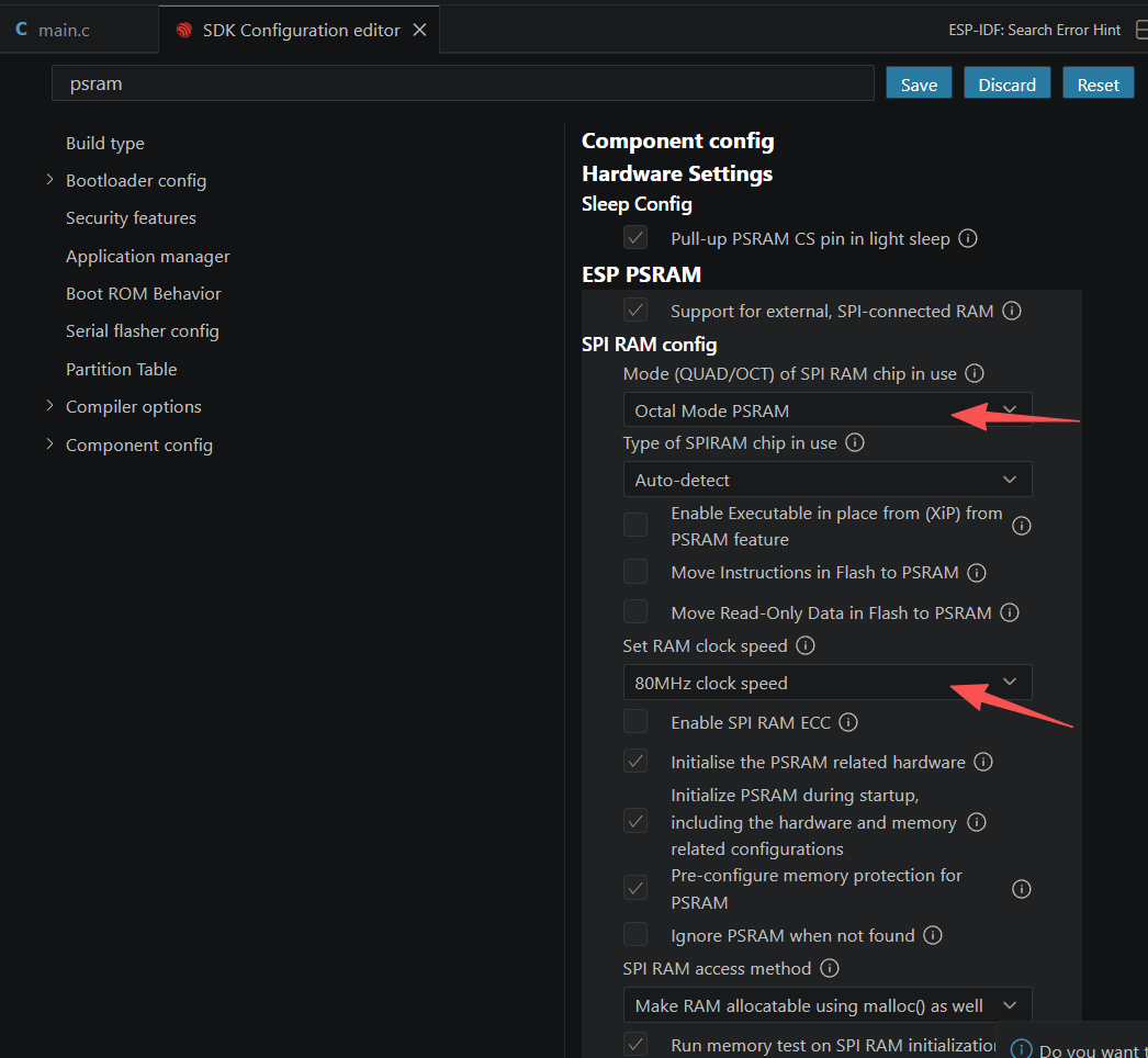 - SDK配置编辑器(配置flash,时钟频率等,idf.py menuconfig)
