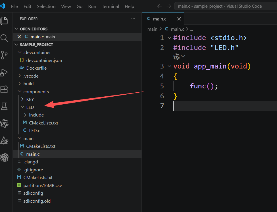 这样会自动在项目里面添加组件目录,可以直接在main.c文件中调用:
