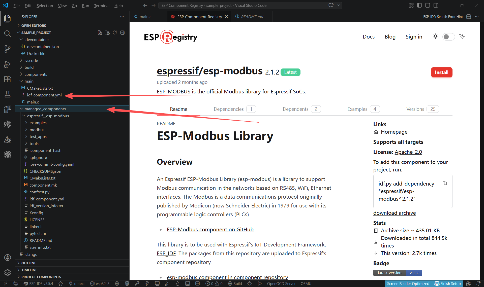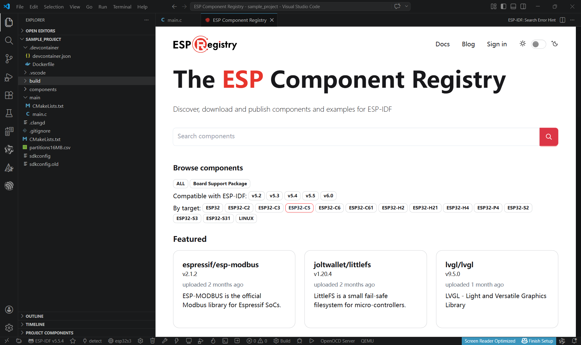 在vscode 快捷键(ctrl+shift+P)搜索:ESP-IDF Show ESP component Registry
