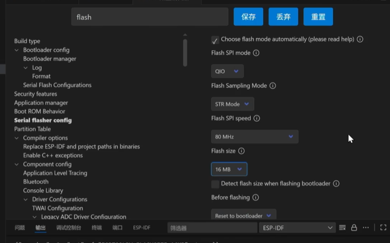 配置完成后,在vscode最下面集成了IDF工具: