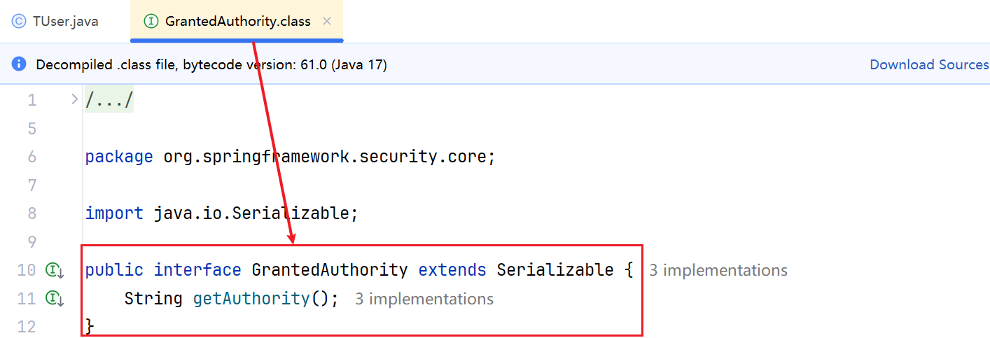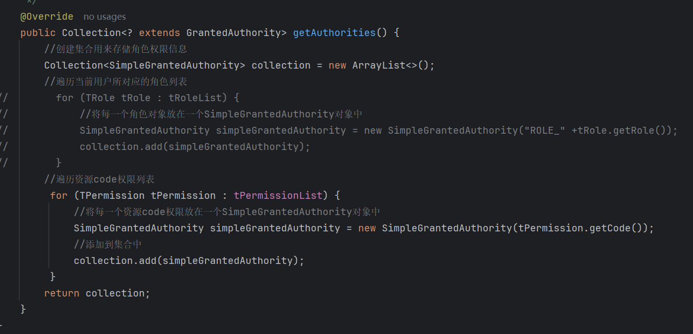 我们当时实现UserDeatils的接口的时候里面有一个权限的列表属性: