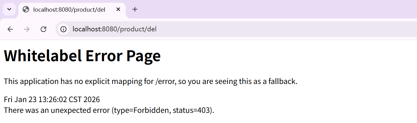 通过测试 http://localhost:8080/goods/del 删除功能时结果如下图: