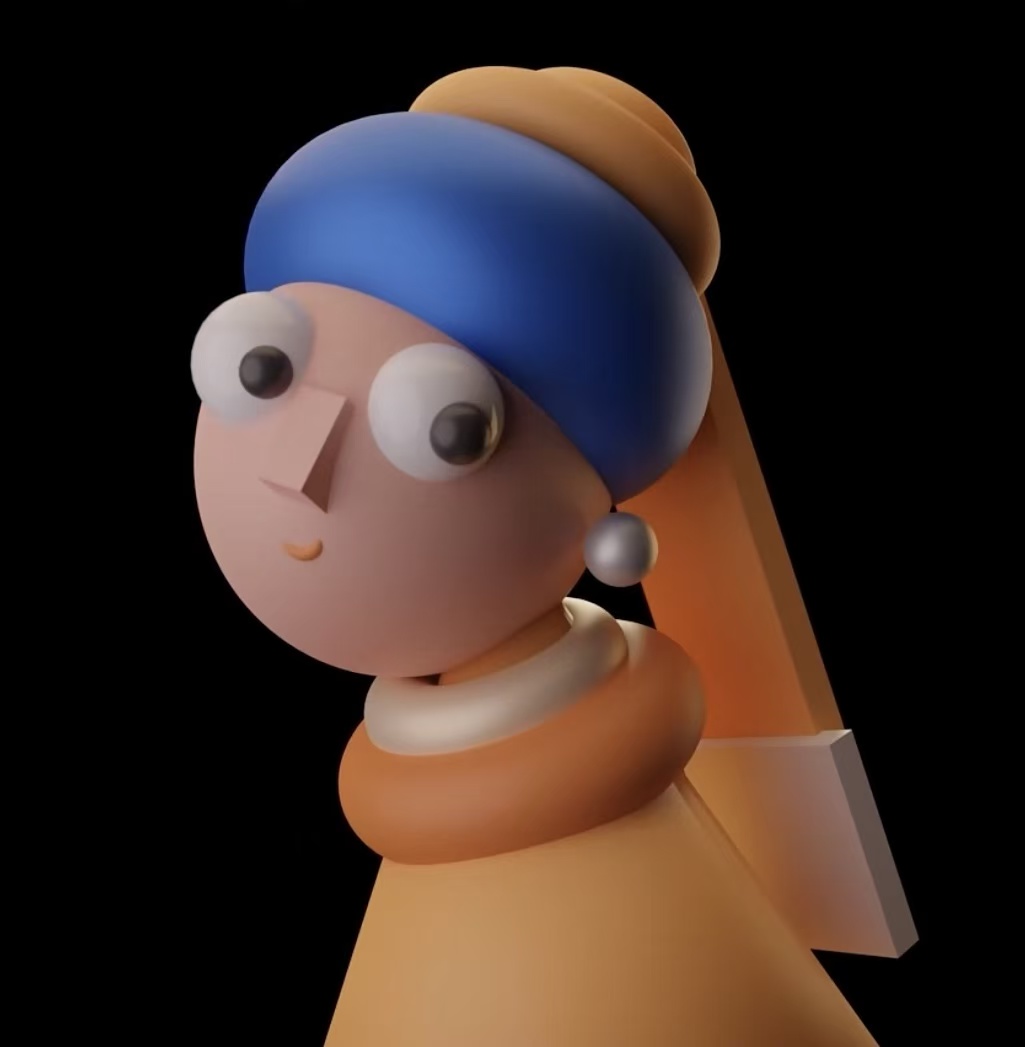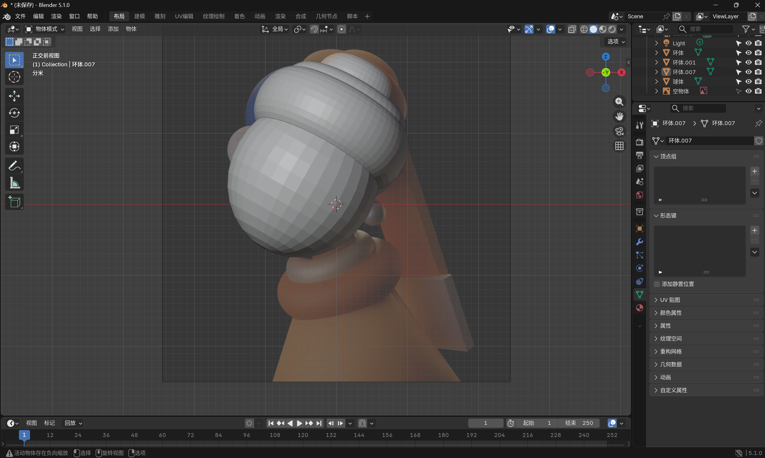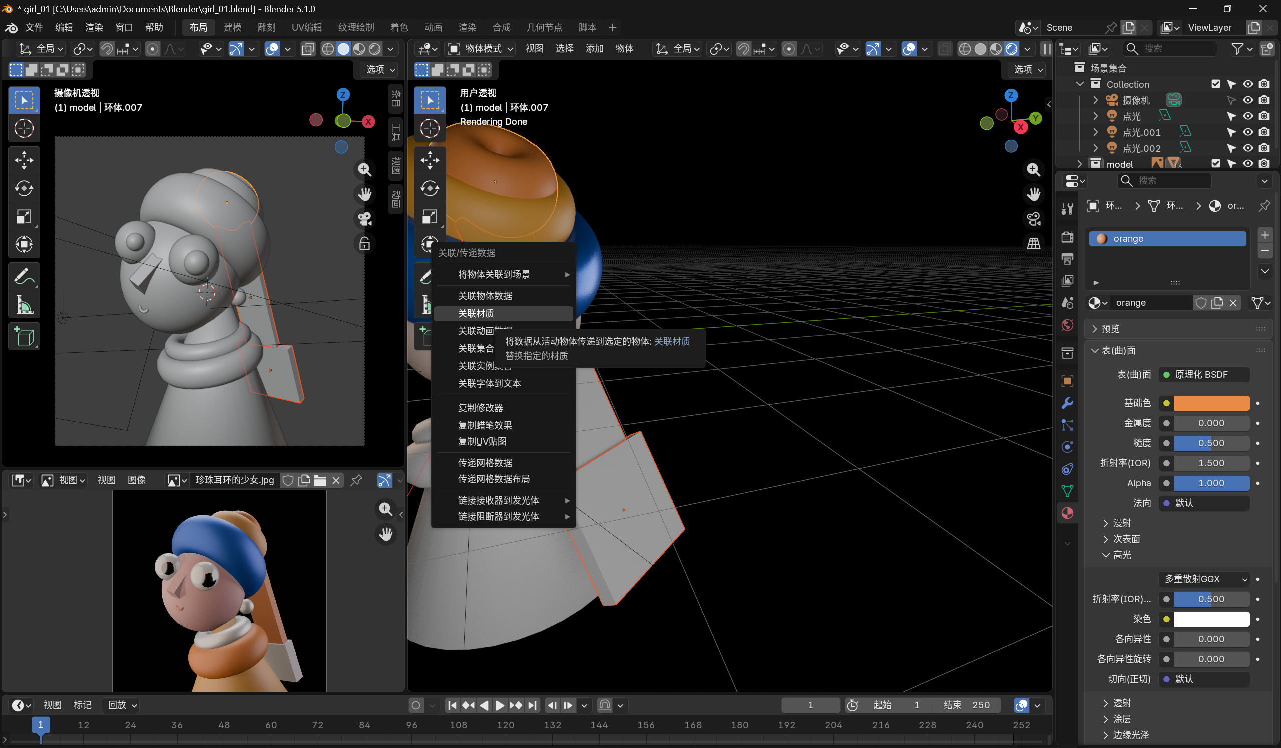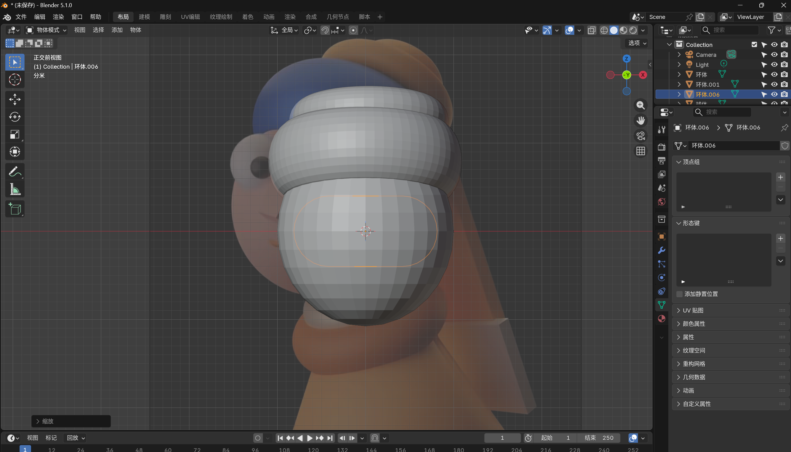 我们用这个环体去当作这个珍珠耳环的少女的头巾(这时候我们需要切换不同的视图来对这个头巾的摆放位置进行调整以便于我们正视图看到的结果不出差错):