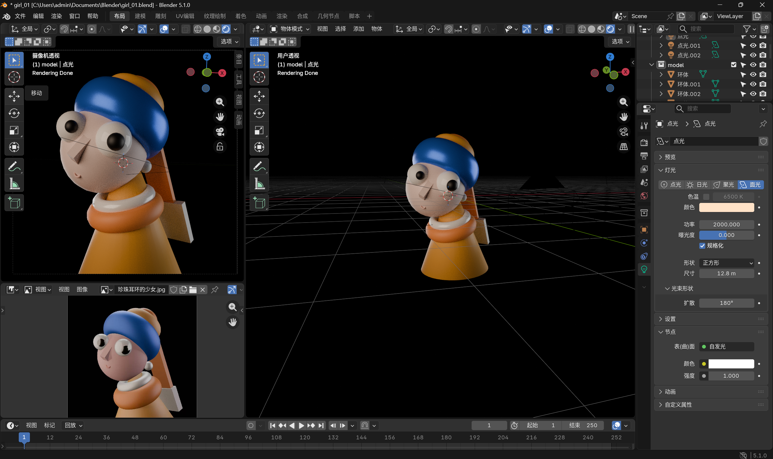 最后结果还有一部分我做了微调,但是最后忘记保存然后软件闪退了就不给大家展示了(Ctrl+S保存!!!),再最后我们渲染(F12)即可看到成品,渲染完左上角会有图像按钮,大家点击然后另存为即可
