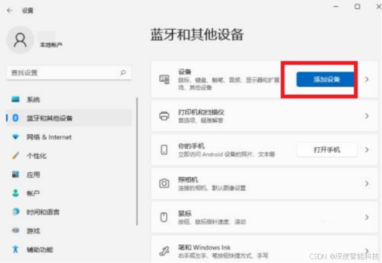 - 在蓝牙设置页面,点击顶部的【添加设备 】按钮,弹出设备添加窗口。