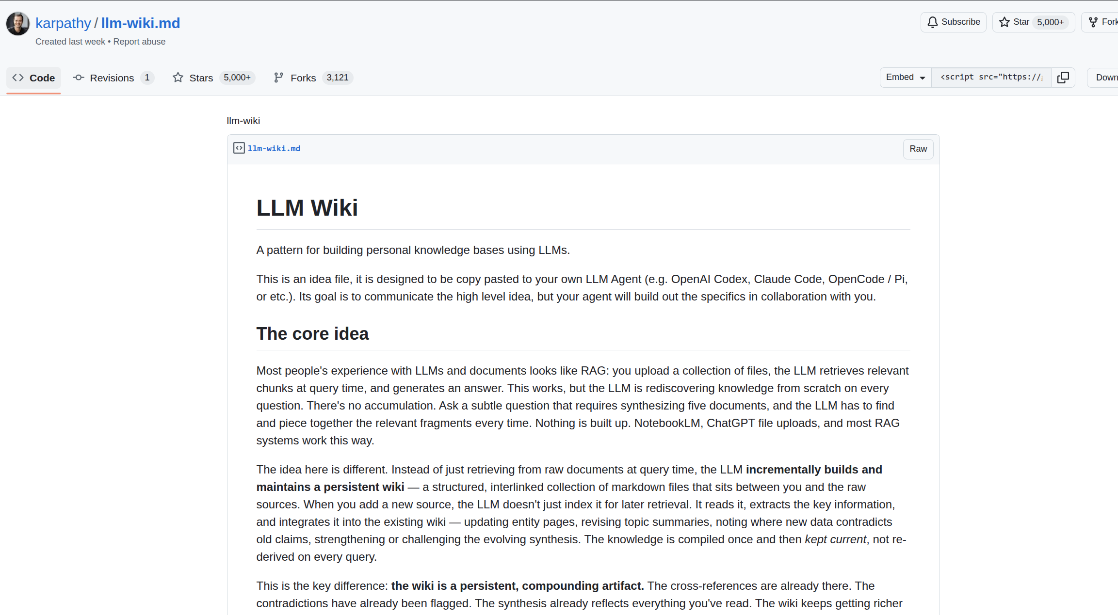其实最近一直有建立自己的知识库的方法,腾讯有个ima,但是苦于没有linux的模式。一般的知识库呢又是云端的,害,我不想整云端的,我只想本地,昨天刷视频刷到了karpathy的数据库构建方法,我感觉可以试试,应该可以提升自己使用ai的能力。