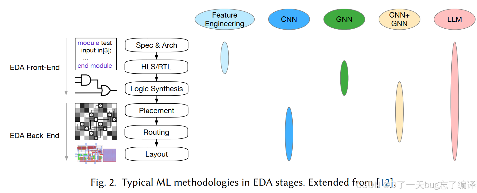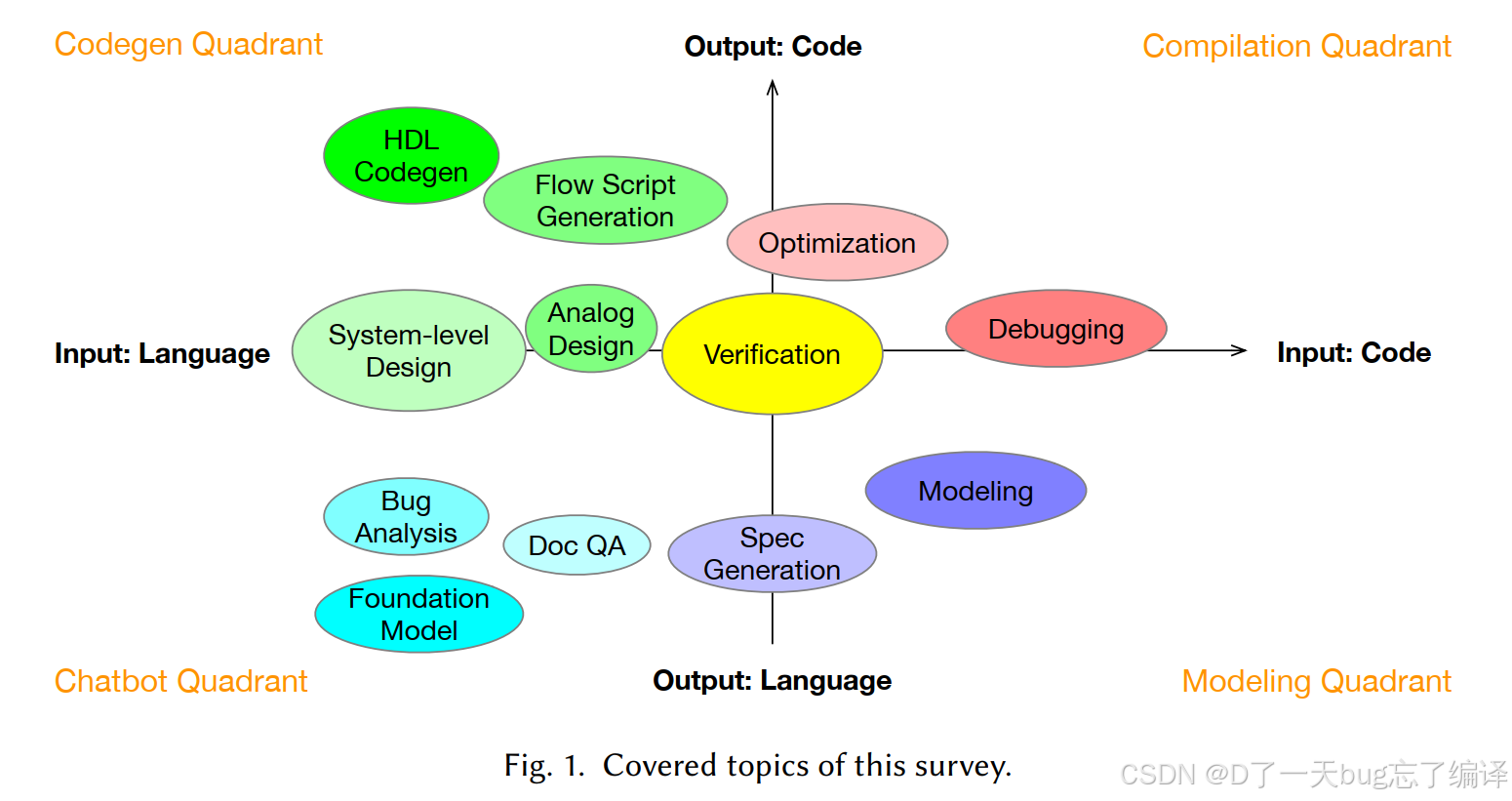 因为 LLM 在 EDA 中参与的任务种类太多,如果不压缩,你会看到一堆看上去毫不相关的论文:写 Verilog、问文档、生成 runset、做 analog design、debug HDL、分类 bug、优化 PCB placement、做 RAG-EDA......
