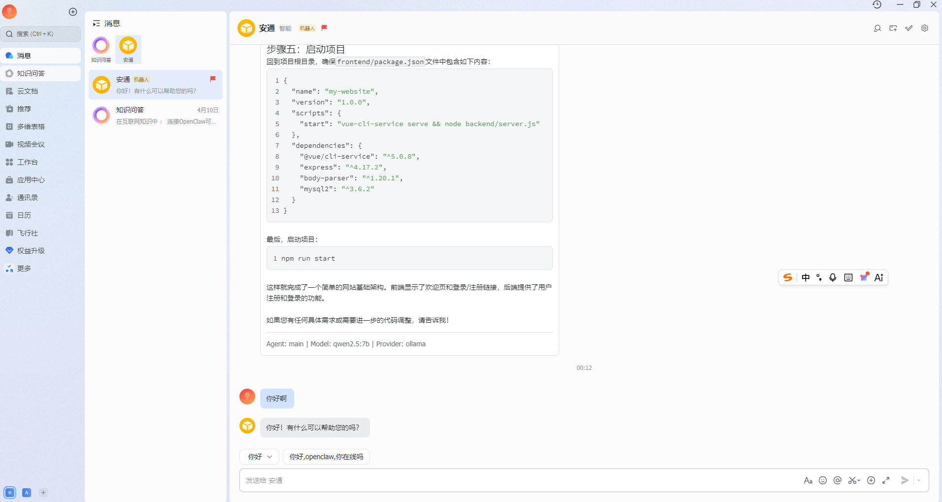 选择本地模型,配置下飞书