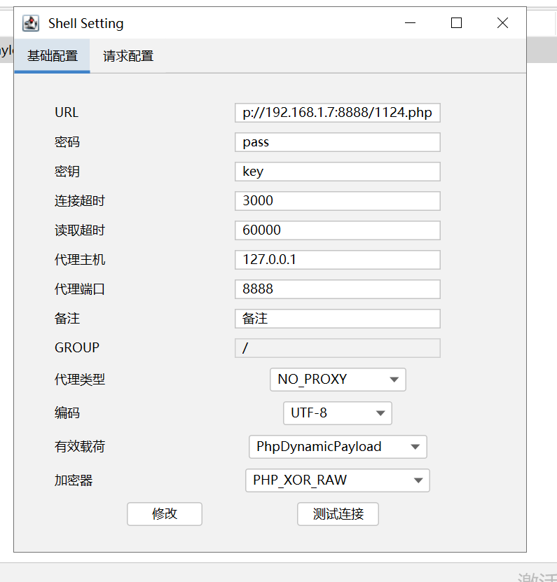 然后放入要执行的电脑中,然后启动后用哥斯拉连接即可